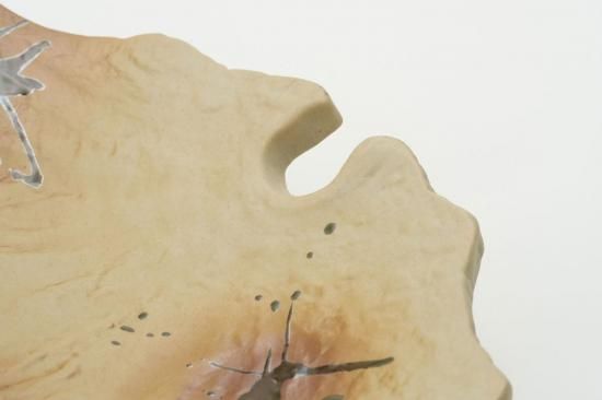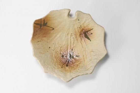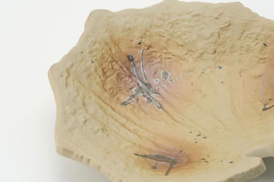 柔らかなベージュの地に、火吹き技法で施された独特の模様が印象的で、まるで自然の中に溶け込むかのような温かみを感じさせます。