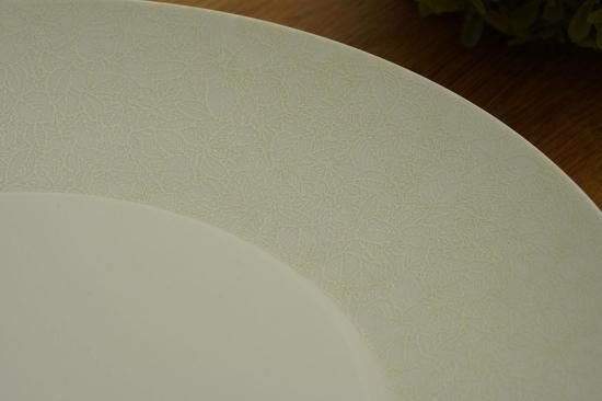 上品な銀彩縁と繊細なグリーンの木の葉模様が美しく調和した一品です。