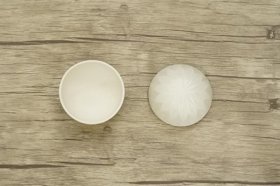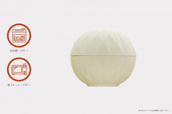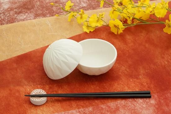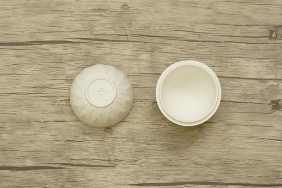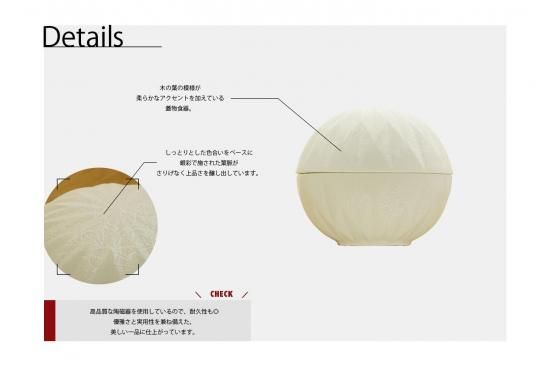 木の葉の模様が柔らかなアクセントを加えている、蓋物食器。