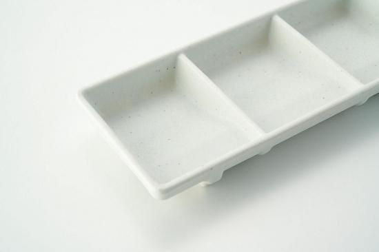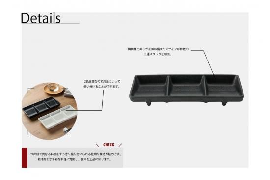 機能性と美しさを兼ね備えたデザインが特徴の三連スタック仕切皿。