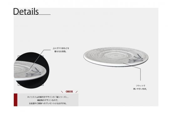 フラットな形状はガラスの器などと合わせて台皿に使うのもおしゃれです。