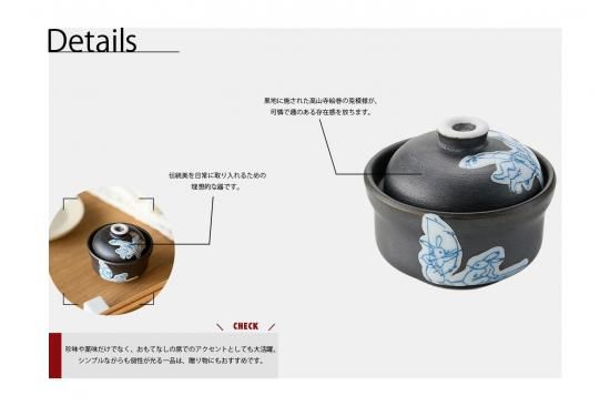 黒地に施された高山寺絵巻の兎模様が、可憐で趣のある存在感を放ちます。