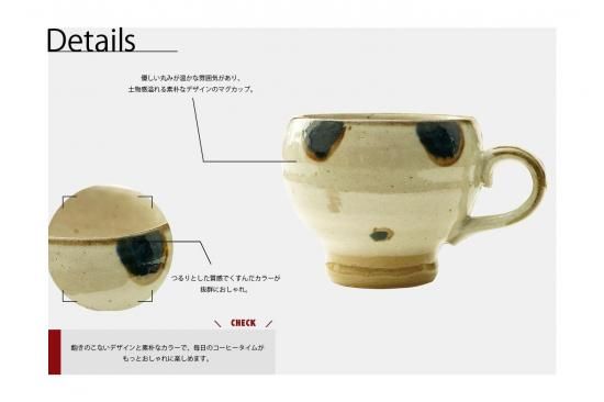 優しい丸みが温かな雰囲気があり、土物感溢れる素朴なデザインのマグカップ。