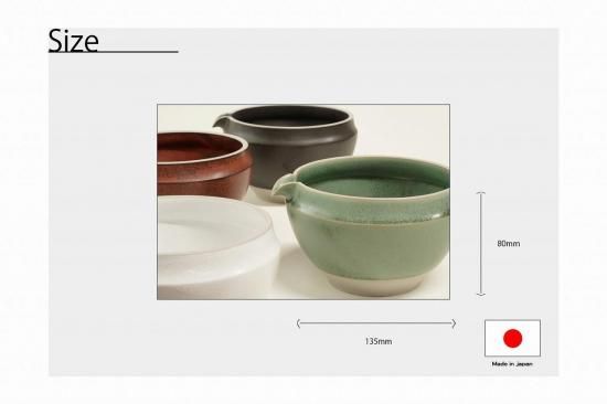 口元がすぼんでいることで持ちやすく、注ぎやすくしているのと同時に、抹茶を点てている際、内側に液体が戻る構造になっているため、こぼれにくくきめ細かなフォームを作る事ができます。