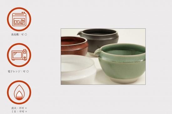 業務用食器として耐えうる強度を兼ね備えたストーン風の新素材「リストーン」を使用し、温もりの感じられる質感のマット釉と組み合わせることで、茶道の伝統的な雰囲気とクラフト的な優しさを感じるアイテムです。