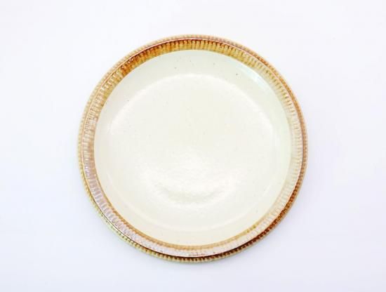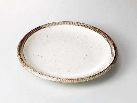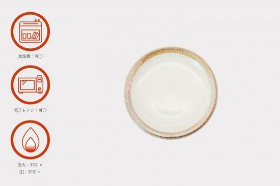 ナチュラルな粉引にまるで額縁のように彩られた渕のストライプ状の十草模様が、普段の食卓をより一層引き立てます。