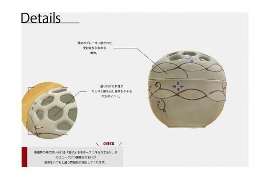 茶道等の場で用いられる『香炉』をモチーフに作られており、そのユニークかつ優雅な佇まいが食卓をいつもと違う雰囲気に演出してくれます。
