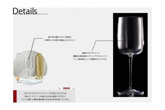 洗練されたデザインと機能性を兼ね備えたワイングラスセットで、ワイン愛好家にとって理想的なグラスです。