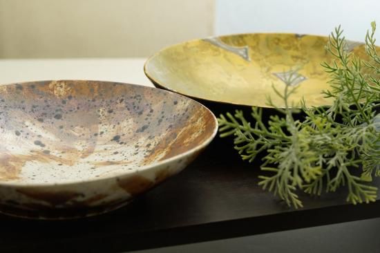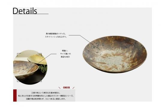 三徳六味という禅文化を基本理念に、和と洋とが交差する世界観を形にした器でおなじみの藤正のラスター錆筋目シリーズ。