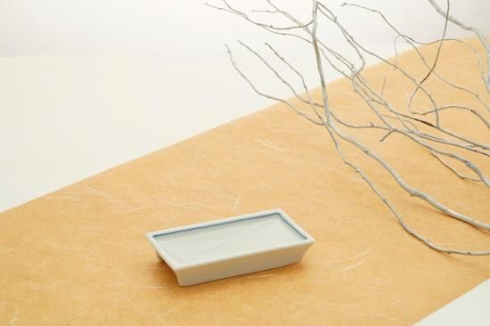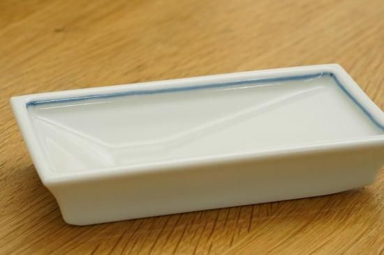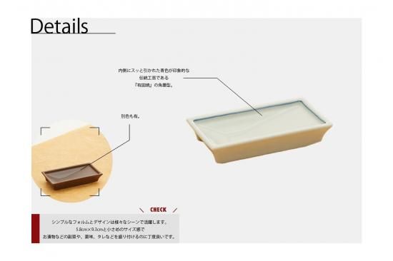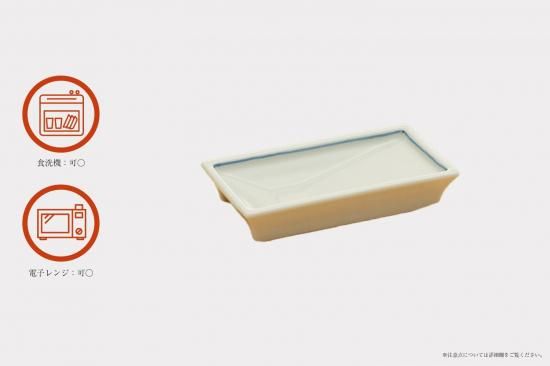 内側にスッと引かれた青色が印象的な伝統工芸である『有田焼』の角菱型。