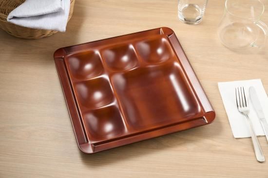 福井クラフトの『30cm角渕付1/5プレート ブラウン』は、シンプルでありながら洗練されたデザインが魅力の一品です。