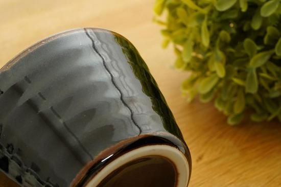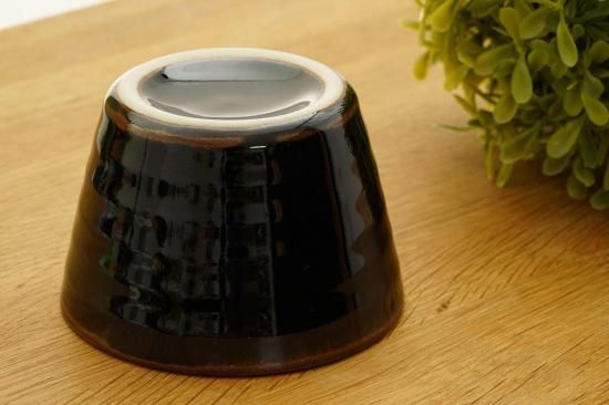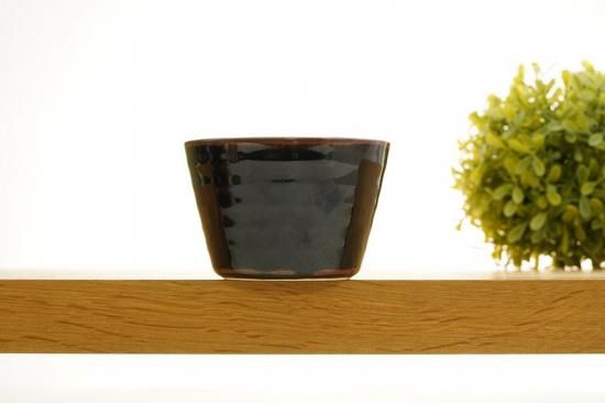 伝統的な天目釉の美しい輝きが特徴の小型千代口です。