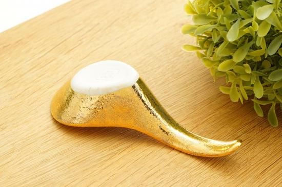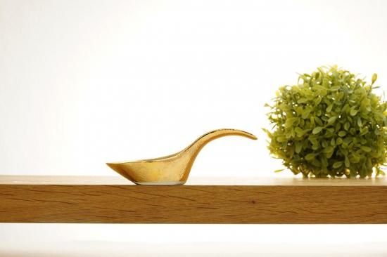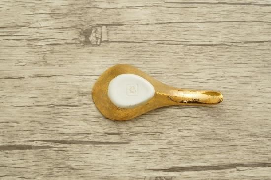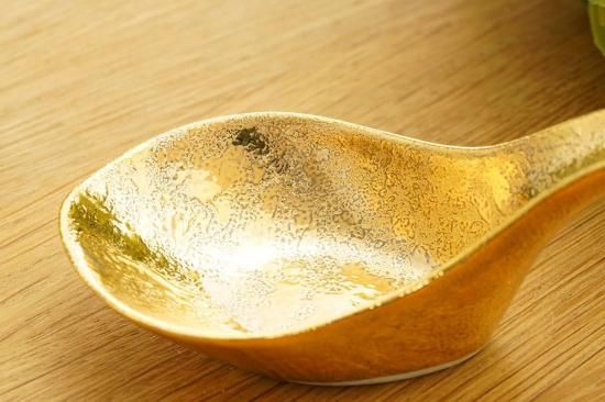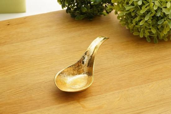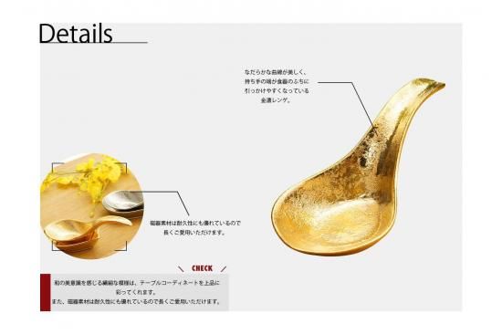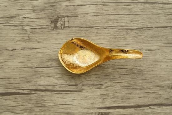 なだらかな曲線が美しく、持ち手の端が食器のふちに引っかけやすくなっている金濃レンゲ。
