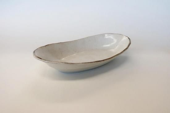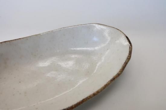 柔らかい雰囲気の釉薬にじんわりとにじむ茶色いラインが魅力的な、お皿。