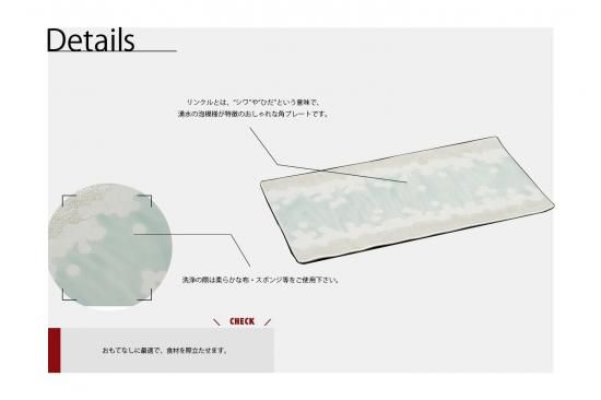 リンクルとは、“シワ”や“ひだ”という意味で、湧水の泡模様が特徴のおしゃれな角プレートです。