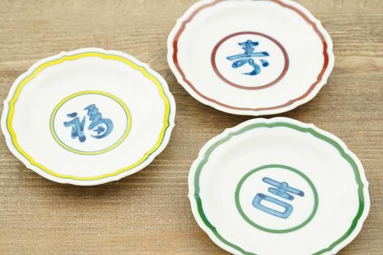 各々に刻まれた『福』、『吉』、『寿』の字は、それぞれの時代の長寿や幸福の願いが文字の形に織り込まれています。