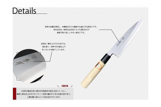 安来の白鋼を使用し、本職用ながらも廉価でお届けする和包丁です。