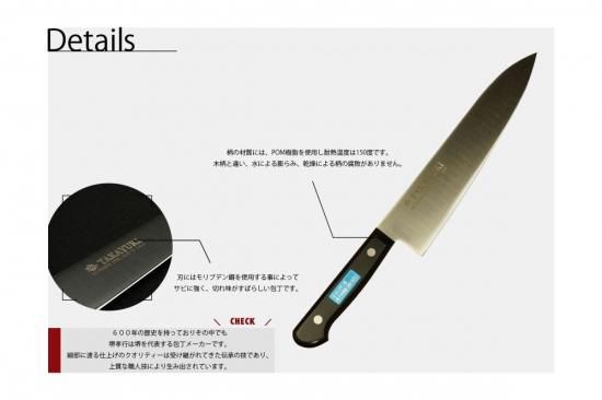 又、刃にはモリブデン鋼を使用する事によってサビに強く、切れ味がすばらしい包丁です。