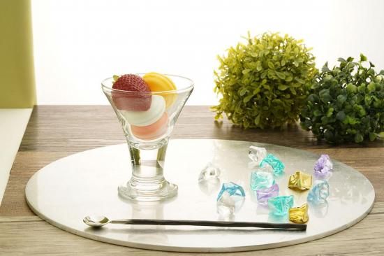 口部が広がっているオーソドックスなパフェグラスなので、アイスクリームやフルーツなどたくさん盛り付けても大丈夫。