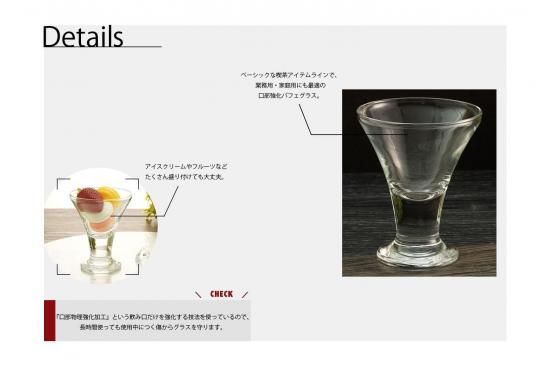 ベーシックな喫茶アイテムラインで、業務用・家庭用にも最適の口部強化パフェグラスです。