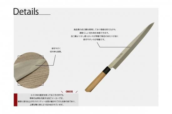 高品質の白三鋼を使用しており価格を抑えながも素晴らしい切れ味を体感できます。