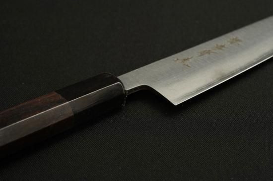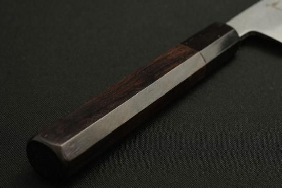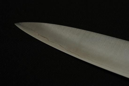 銀三鋼は非常に硬く研ぎを一度すると非常に長切れするので長時間作業をされる方にお勧めの包丁です。