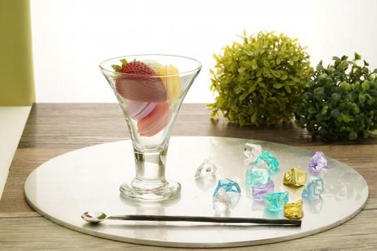口部が広がっているオーソドックスなパフェグラスなので、アイスクリームやフルーツなどたくさん盛り付けても大丈夫。