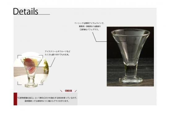 ベーシックな喫茶アイテムラインで、業務用・家庭用にも最適の口部強化パフェグラスです。