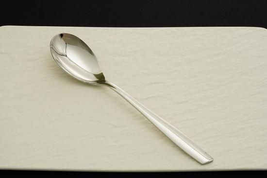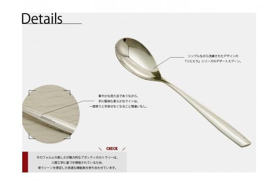 シンプルながら洗練されたデザインの『リビエラ』シリーズのデザートスプーン。