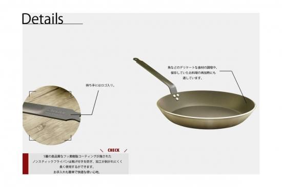 食材の旨味を引き出す極厚アルミのフライパンは5層の高品質なフッ素樹脂コーティングが施されたノンスティックフライパンは焦げ付きを防ぎ、加工が剥がれにくく長く使用するができます。