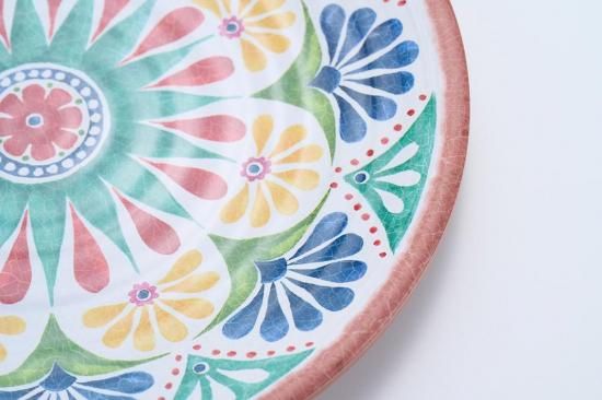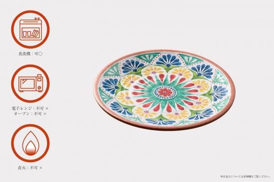 テラコッタ風のベースがデザイン全体を引き締め、独特のエキゾチックな雰囲気で食卓を鮮やかに彩り、料理をより一層引き立てます。