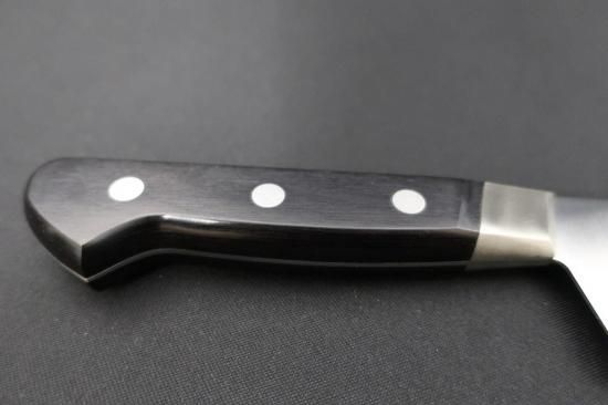 ハガネ包丁なみの鋭い切れ味と研ぎやすさ、洋銀(ニッケルシルバー)を施したツバとリベット、高品質のハンドルとどれをとってもハイクオリティな仕上げです。