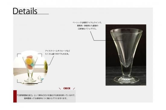 ベーシックな喫茶アイテムラインで、業務用・家庭用にも最適の口部強化パフェグラスです。