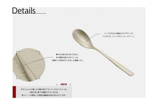 シンプルながら洗練されたデザインの『リビエラ』シリーズのコーヒースプーン。