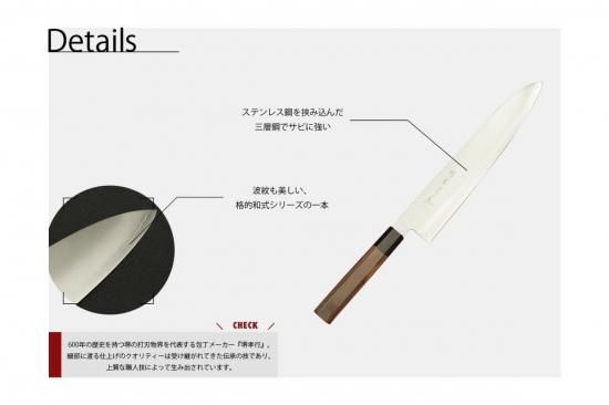 ステンレス鋼を挟み込んだ三層鋼でサビに強く、波紋も美しい、本格的和式シリーズの一本です。