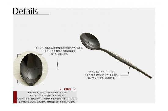 カトラリーを持った時のバランスの良さ、柔らかいフォルムが生み出すハンドルの快適な握り心地が特徴です。