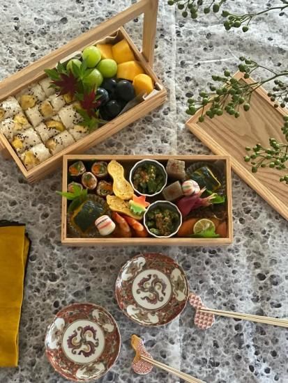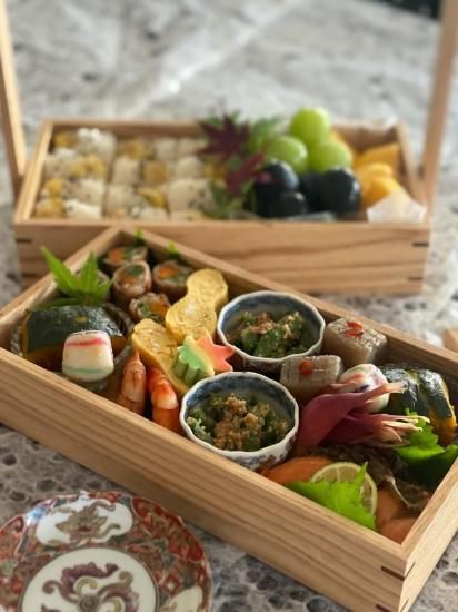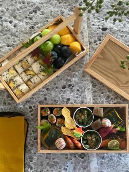 お弁当箱として、朝食用の料理箱として、手提だけ単体でお酒の突き出しセットとして、お鍋の食材箱としてもご利用いただくことができる、身2段(手提付・無し×各1)・蓋セット。
